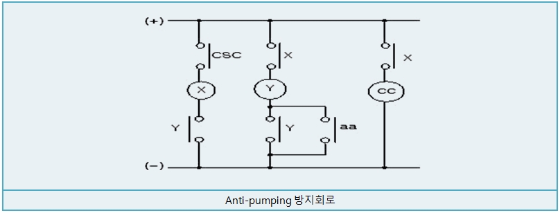 (X : 투입계전기, Y : 펌핑방지계전기, aa : 보조접점)