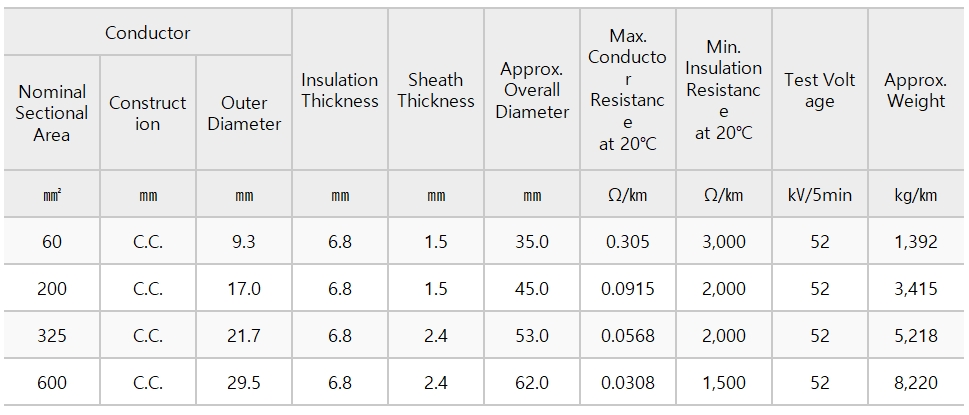 4. 수트리 억제형 케이블의 SPEC - 구리(CU)