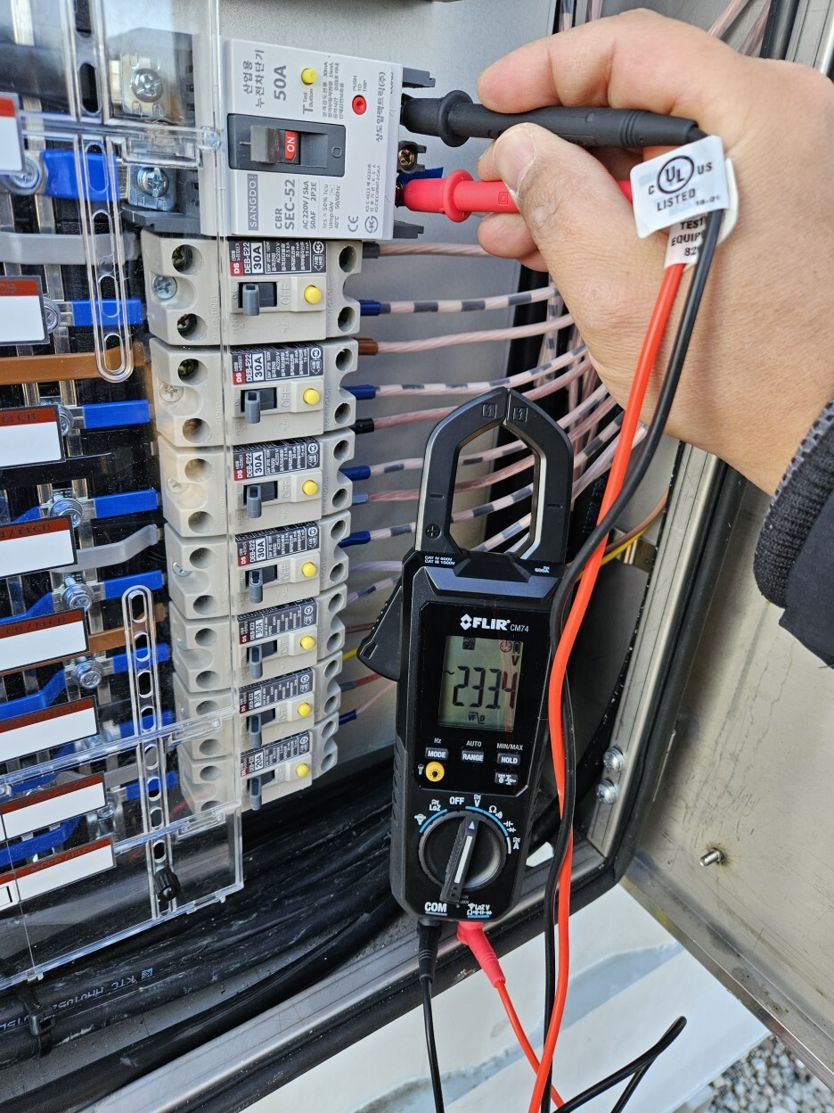 < Fig03. 분전반 AC전압 측정모습 >