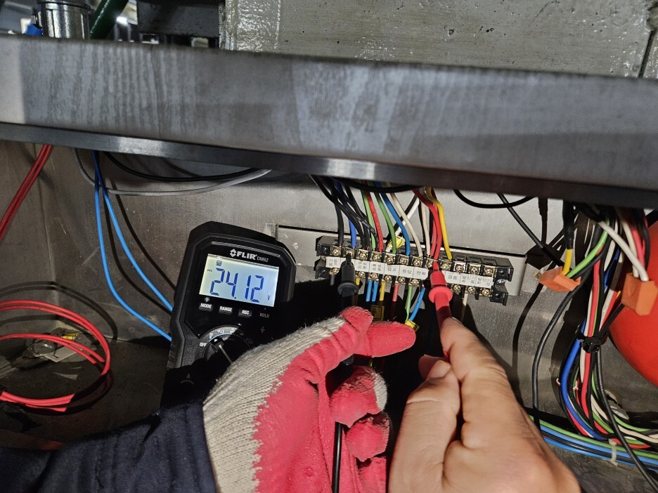 소방 발신기함의 DC전압도 측정해보았습니다. 24V 정상입니다.