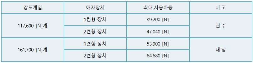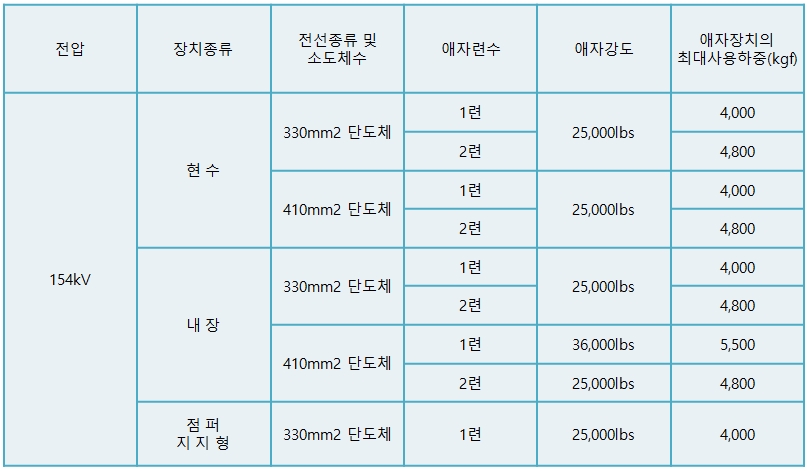 (주) 1. 본표의 안전율은 애자 : 3.0, 금구 : 2.5를 기준으로 하였음.