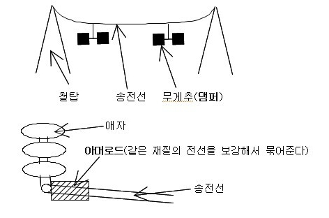 ① 역할 : 철탑과 전선 절연, 전선과 철탑을 견고하게 연결