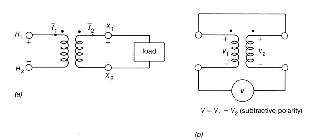 b) 극성 시험 : 그림과 같이 결선하여 한쪽 권선에 전압을 인가하고 그림과 같이 측정하면