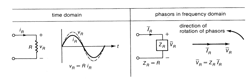 ① 회로 요소 R 에서 전압 - 전류 phasor