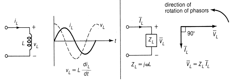 ② 회로 요소 L 에서 전압 - 전류 phasor