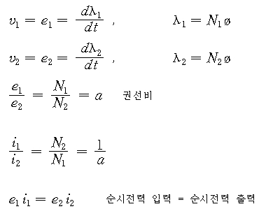 - 철손, 동손, 누설 무시, 투자율 무한대