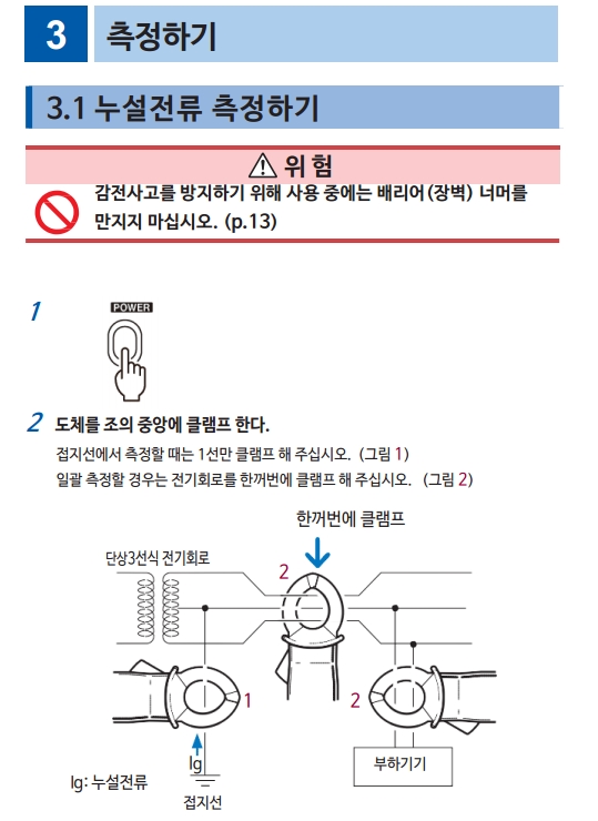 스위칭 전원 및 인버터 기기가 보급됨에 따라 누설전류파형에 고주파성분이 중첩되는 경우가 있습니다.
