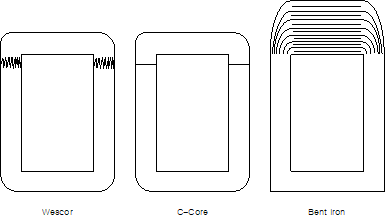 C-코어는 평평한 butt-gap을 갖는 코어이다. 코어는 모양을 이루기 위하여 직사각형 틀에 권선한 후 두 부분으로 나뉜다. 그리고 코일들과 절연물을 설치한 후 다시 결합한다. Bent Iron 코어는 코일이 감긴 후 구부러진 적층의 끝 부분이 접착되지 않는 코어이다. 이 부분에서 코어는 2배의 두께가 되며 lap-joint를 갖는다.