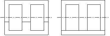 단상 외철형 코어는 나란한 두개에 코어에 의해 만들어질 수 있습니다.