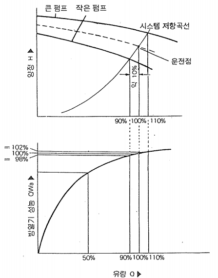또한 흡입양정 못지 않게 중요한 것은 펌프의 저양정 운전이다. 이는 다단펌프의 경우 유량변화에 따라 양정 변화가 심하므로 특히 주의해야 한다.
