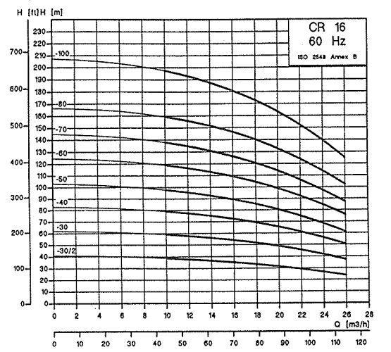 예를들어 20Ton 보일러의 경우 333Lpm의 급수부하를 갖게 되며 압력을 10~11Bar를 필요로 한다고 하자. 따라서 사양은 350Lpm x 11Bar로결정되었다.(그림 Fig07).