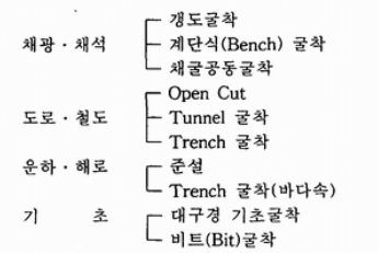 검토하기 위하여 먼저 암반분류가 적용되고 있는 굴착의 개념을 정리할 필요가있다. 일반적으로 굴착의 개념은 흙 또는 암석을 어떤 목적을 위하여 제거하는 작업을의미하며 그 수단으로는 인력, 기계력, 화약사용 등이 있고 굴착의 목적 , 굴착장소에 따라 여러 가지 종류로 나타낼 수 있다.