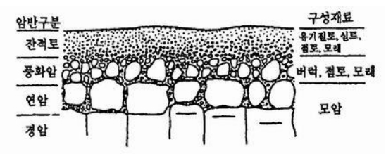 · 암의 내부까지 풍화가 진척되어 있고 암의 구조 및 조직이 남아 있음(완전-심한 풍화)