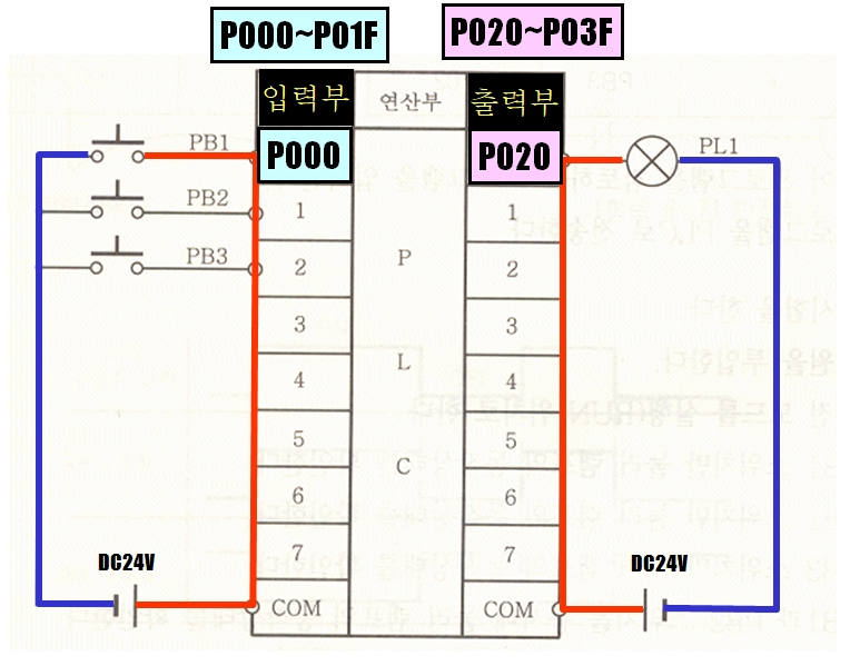 외부 입.출력 번호의 할당은 첨자(Device 이름) ‘P’로 표현함.