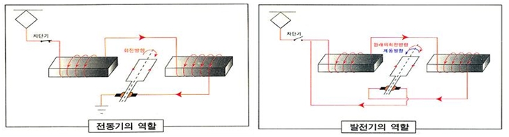 평소에 바퀴를 회전시켜 주던 주 전동기는 회로를 약간만 변경시키면 발전기로 변한다. 이때 지금까지 회전하던 방향과 반대방향으로 회전하려는 힘, 즉 제동력이 생기는데 이 원리를 이용하면 기계적 제동장치의 최대 약점인 부품의 마모나 마찰면의 발열 등이 나타나지 않는 전기제동이 가능하다.
