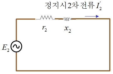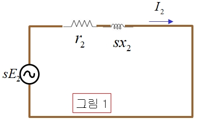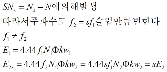 2차 회전자 권선에는 회전 자기장의 속도와 회전자의 속도 차에 의한 기전력이유도 된다.