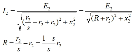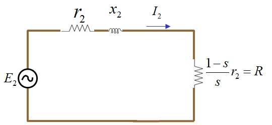 변압기라면 R은 부하가 되겠지만 전동기의 경우 R 은 기계적인 출력을 발생 시키는 등가 저항 이며 이는 전부하 토크와 같은 토크로 기동하기 위한 외부 저항이 된다.