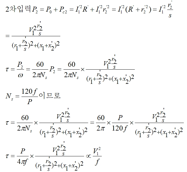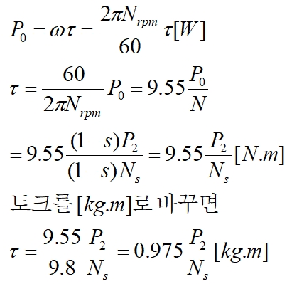 결국 토크는 2차입력과 동기속도의 관계로 나타낼수 있다.