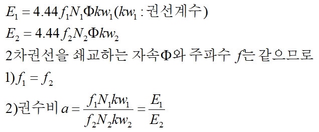 · 변압기 2차 : 전자 유도 작용에 의해 유도 기전력 발생