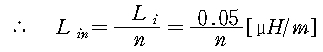 한도체당 0.05[μH/m]이므로 n도체의 경우 n도체가 병렬로 연결되어 있는 것으로 생각할수 있으므로