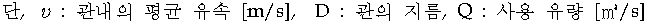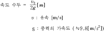 어느 속도를 가진 유수의 에너지 산정의 기본이 되는 것이다. 위치수두와 같은 취급을 하기 위해 길이의 차원을 가진 단위로 한다.