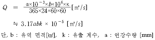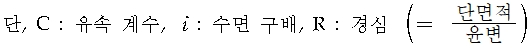 관로 등의 고체로 둘러싸인 수류에서 도중에 물의 출입이 없는 한 각기 다른 면적 A1 으로부터 유입되는 수량과 A2 로부터 유출되는 수량은 같다.
