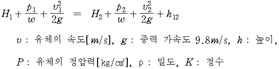 수관 속의 유수의 압력은 유속에 따라서 다른 값이 된다. 따라서 압력의 에너지와 속도의 에너지는 호환성이 있다는 것이 된다.