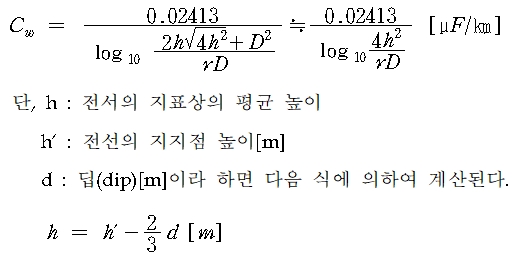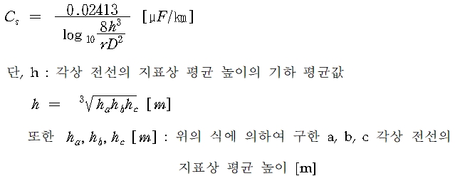 작용 정건 용량 C, 대지 정전 용량 Cs, 전선간의 정전 용량 Cm 사이에 는 다음과 같은 관계가 있다.