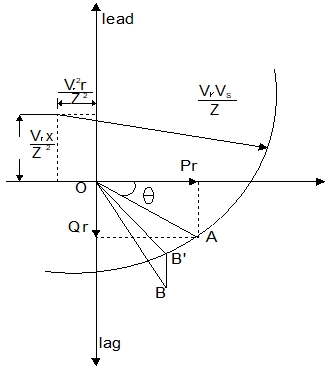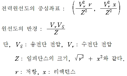 송전단전압과 수전단전압이 일정하고 임의의 역률일 때의 유효전력이나 무효전력 등을 구하는 원선도이다. 그림에서 Pr이 유효전력, Qr이 무효전력이고 OA가 그때의 피상전력이다. 피상전력이 궤적상에 없을 때는 정전압 송전을 할 수 없기 때문에 앞서거나 뒤진 전력을 공급해 주어야 하는데 예를 들면 OB의 앞선 무효전력을 공급하면 원선도상에 온다.