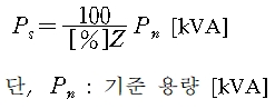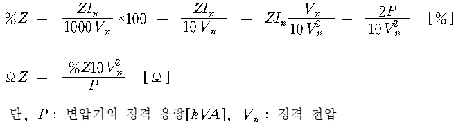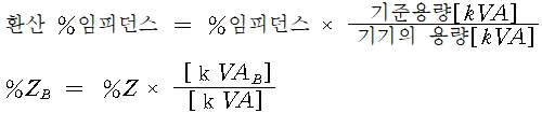 %Z를 집계할 때는 먼저 기준 용량을 정하여 환산한다. 즉, [kVA] 용량이 다른 각 부분의 %Z를 그 때 채용한 기준 용량 [kVA]과 실제의 그 기기의 [kVA] 용량과의 비를 곱해 주면 된다.