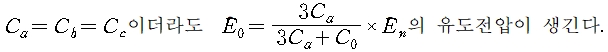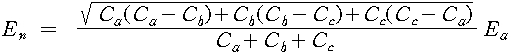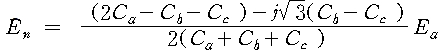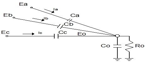 만약, 대지 어드미턴스로 대지 정전 용량만을 고려한 것으로 하여 그 값을 Ca, Cb, Cc라 하면, 이때의 잔류 전압 En은 다음과 같다.