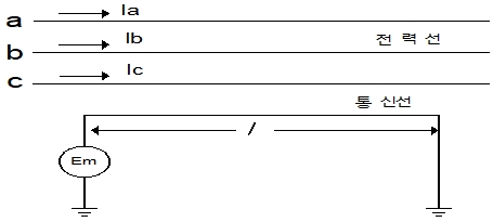 전자 유도는 전력선과 통신선의 상호 인덕턴스 때문에 전력선의 기유도 전류에 의하여 통신선에 전압이 유기되는 현상이다.