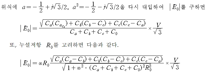 또, 전력선의 대지정전용량이 같지 않기 때문에 중성점에 잔류전압 En이 생겼다면