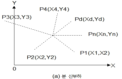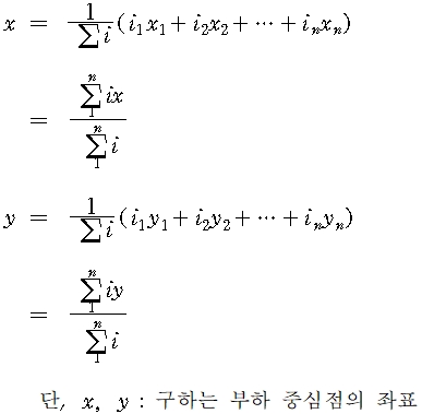 부하 중심점을 구하는 방법을 다음 식으로 산출한다.