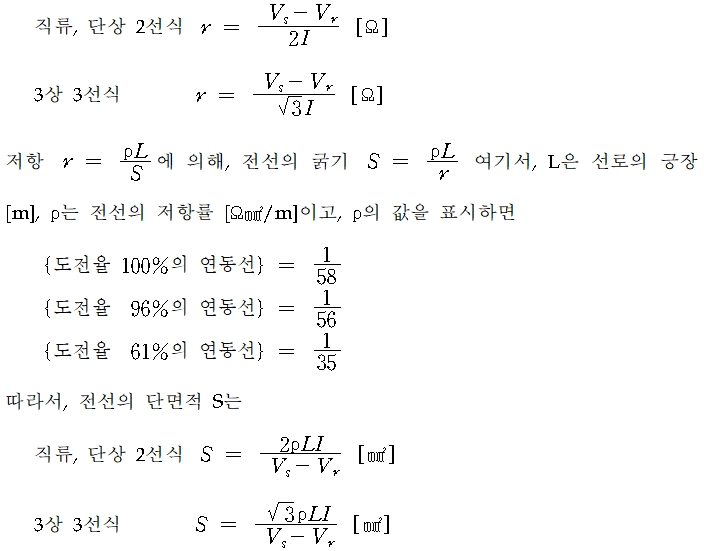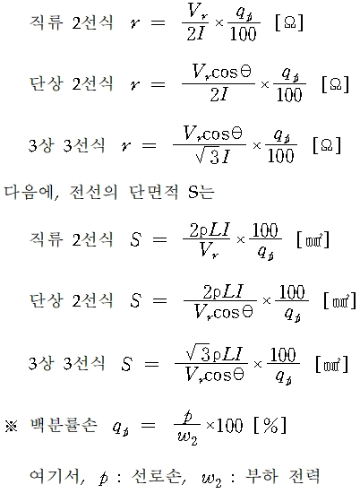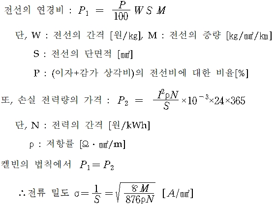 경제적인 전선의 굵기를 정한다.