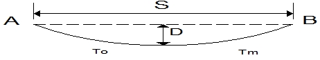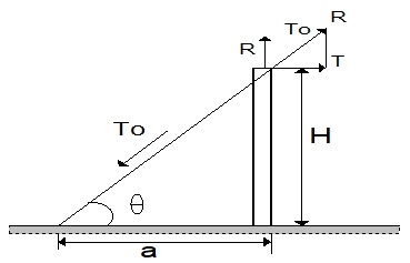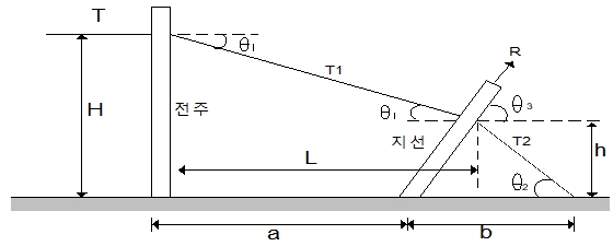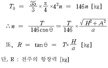 목주를 수평 장력 T로서 당기고 있을 때 지선의 장력 T0[㎏]를 구할 수 있다.