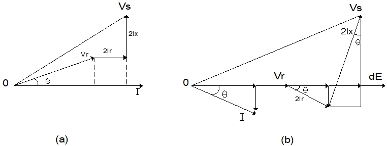 위의 식은 벡터도에서 쉽게 유도된다. 따라서 그림 (a)와 같이 I를 기준으로 하면 처음의 식이 얻어진다. 또한, 그림 (b)와 같이 Vr을 기준으로 하면 나중의 식이 얻어진다.