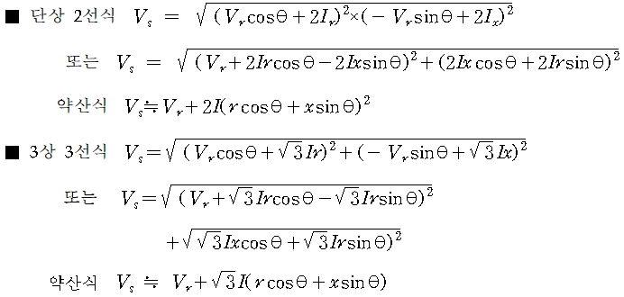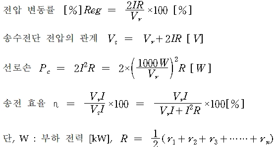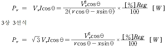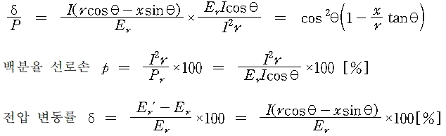 1) 백분율 선로손과 전압 변동률과의 관계식