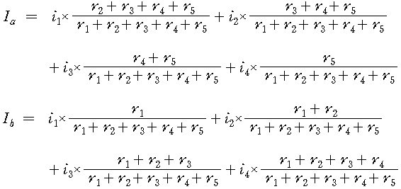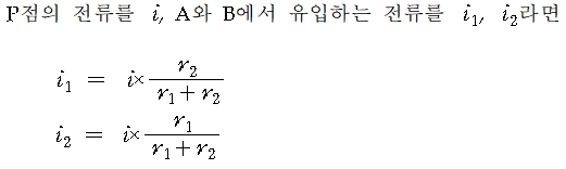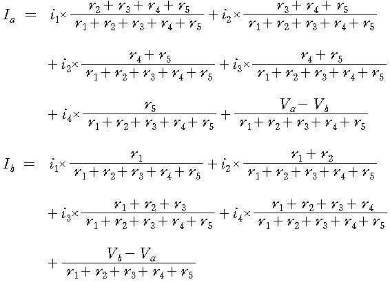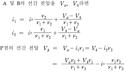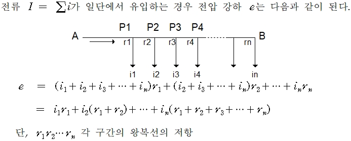 위의 식에 의해 Ia, Ib의 값이 구해지면 각 구간에서의 전류와 저항치에 의하여 각 구간간의 전압 강하를 구할 수 있다.
