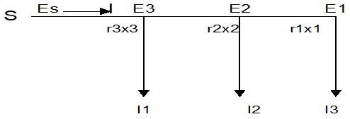 그림과 같이 분기 부하의 어떤 일반 배전선의 경우에는 각 분기점에서의 전압 상호간의 위상차는 실제상 무시할 수 있을 정도로 적으므로 앞의 약산식을 적용할 수 있다.