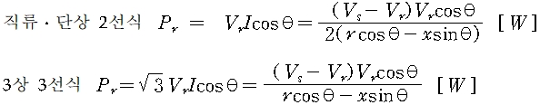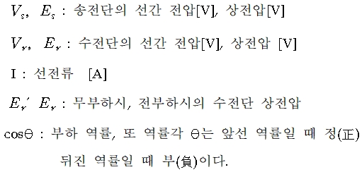 수전단 전력의 송전단 전력에 대한 백분율을 송전 효율 η라 한다.