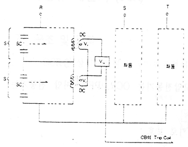 각상의 방전 Coil 2차측을 delta 견선한 것으로 평형상태의 Vry 전압은 0Volt이나 고장시 Vry에 전압이 검출된다. Open delta 방식의 이상전압 검출 예)를 나타낸다.