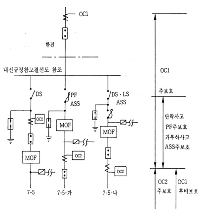 ㆍ 자가용 전기설비의 방사상 계통 단락보호에 적절