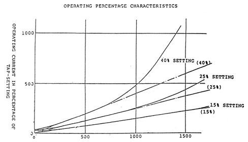 정정은 계전기의 전면에 있는 탭판에서 한다. 탭판에 있는 T1, T2, T3은 각각 억제회로 탭 변류기를 나타내는 기호이다. 차동회로 탭 변류기는 각각의 억제회로 탭 변류기의 탭을 조정, 동시에 SETTING 시킴으로서 SETTING 된다. 전류 탭이 SETTING 된 후에는 정상적인 상태에서 차동회로 탭 변류기의 2차 전류는 0이 된다. 이때 CHECK용 단자 C에서의 단자 전압도 0이 된다. 억제회로 탭 변류기의 2차 전류는 저항 R22, R23, R24로 흐르고, 각 저항에 걸리는 전압은 억제회로 전압을 얻기 위해 전파정류된다. 차동회로 탭 변류기의 2차 전류는 순시요소와 탭 변류기 TS로 흐른다. 탭 변류기 T5의 2차는 2개의 회로로 구성되어 있다. 그 하나는 기본파 및 제 3고조파를 위한 BAND-PASS FILTER를 가지고 있다. 나머지는 제 2고조파를 위한 BAND-PASS FILTER를 가지고 있다. 전자회로에서 전파 정류후 발생되는 전압으로 차동회로 동작전압을 얻는다. 후자회로에서 제 2고조파를 억제하는 전압을 얻는다, 만약 차동회로 전압이 억제전압과 직렬로 된 상태에서 어떤 두 전압의 정해진 비율보다 크게 증가해 버리면 전류가 DC회로에는 MAIN UNIT RY1으로 흘러서 주접점이 닫힌다.