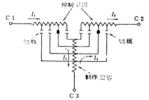각 변류기 CT1, CT2, CT3의 2차 권선전류를 I1, I2, I3라 하면 I1, I2, I3는 계전기의 C1, C2, C3 단자에 흐른다.