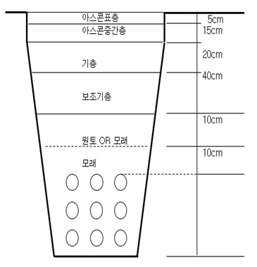 · 기존도로 원인자 복구 포장의 경우 지자체의 도로 포장굴착 복구기준을 참고하여 포장두께 등 포장단면을 설계한다.