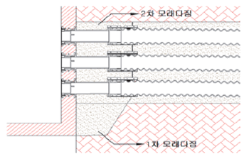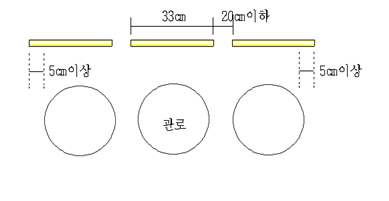 (b) 관경 및 관 간격을 고려하여 관로 좌, 우측 끝으로부터 최소 5cm이상 바깥까지 설치하여야 한다.