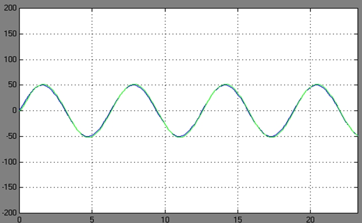 < Fig08. 진폭이 50, 주파수가 5rad/sec일 때 입력과 출력 >