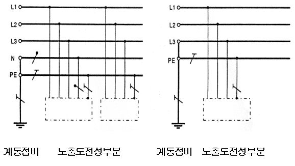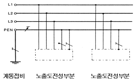 - 중성선 및 보호도체의 기능을 한 개의 도체로 겸용(PEN도체)
