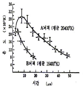 뇌방전로 온도는 스펙트럼에서 측정한 값으로서 3만[。K]에 가까운 경우가 있으며 5~10×10-6[s]사이에서 최고 온도에 달하고 있다. 전자밀도는 1024/㎥이다. 또 가스압은 약 10[atm]에 달하는 것이 스펙트럼의 도플러 너비에서 측정된다. 물론 뇌전류는 파고값, 지속시간 등이 파라미터로서 변화하므로 최고의 경우만이 아니다. 그림 뇌전류 온도와 시간특성7은 온도변화 예를 나타낸다. 온도상승은 i를 뇌전류의 파고값[A], t를 지속시간[s]으로 하면 i2t에 비례하고 양극성의 낙뢰에서는